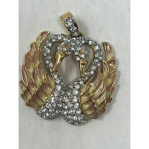 Nolan Miller Glamour Collection Double Swan Enamel & Swarovski Charm