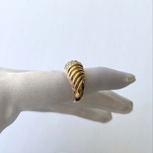 Nolan Miller Gold Dome Faux Pave Crusted Crystal Ridge Ring - sz 8