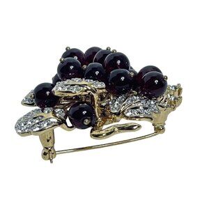 Nolan Miller Gold Tone Rhinestone And Grape Cluster Brooch (5964)