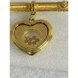 Nolan Miller Gold Tone Crystal Heart Floating Crystal Rhinestone Bar Brooch.