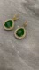 Sparkly bright green hook earrings set in gold tone with a halo of clear crystal gems.