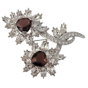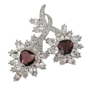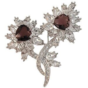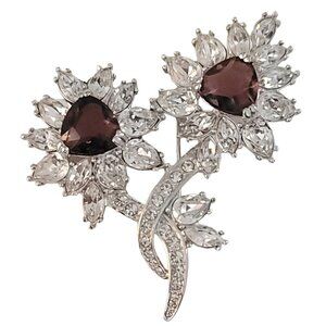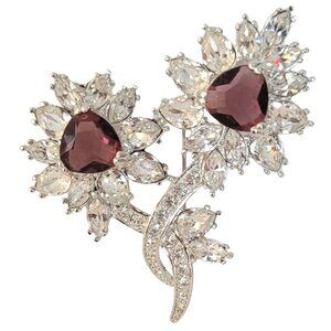 Nolan Miller Silver Tone Clear Purple Trillion Rhinestone Flower Brooch, M1025
