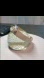 Oval crystal encrusted case & mother of pearl face, blue jeweled button. Original box & paperwork. The watch is in very good pre-owed condition. The orginial white leather band is in fair to good condition, the underside does show some wear & aging. I did my best to document the condition. Please review all the pictures & I am happy to answer any questions. NEEDS A BATTERY.