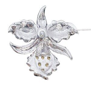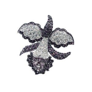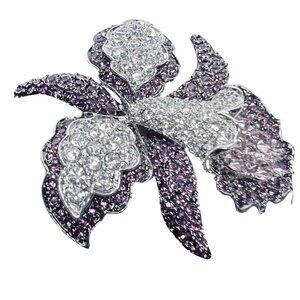 Nolan Miller Silver Tone With Purple And Clear Rhinestone Orchid Brooch (5965)