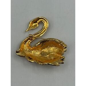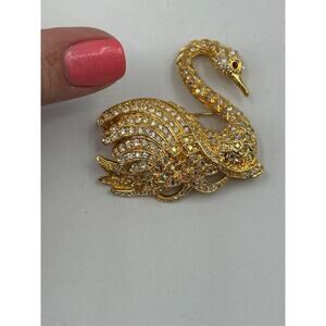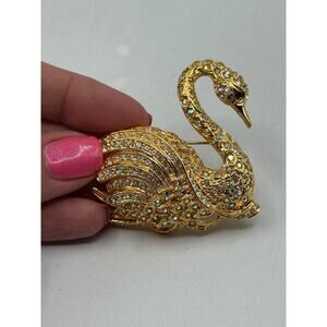 Nolan Miller Swan Brooch Gold Tone Rhinestones Signature Beautiful Signed Vtg