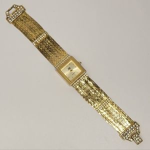 "Nolan Miller" Women's Liquid Gold Tone with Rhinestone Stations Watch with New Battery Installed (Works)