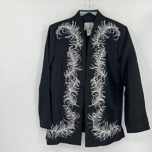 Nolan Miller black silk embroidery jacket blazer embellished beading Small