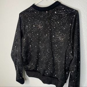 Light up the room in the cozy Celestial Sweatshirt, made for luxe lounging. Soft french terry with holographic foil shimmer is perfect for staying home in style. This staple piece features french terry cuffs and hem.