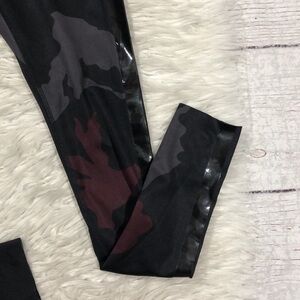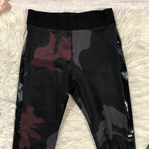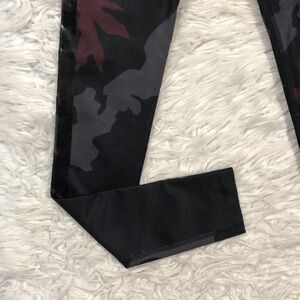 Noli black, red, and gray colored camo patterned racer side striped high waisted 7/8 leggings. These leggings are in great used condition