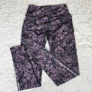 Noli Yoga Legging Pink Black Splatter Reflective Side Stripe XS 0/2 Gym Workout
