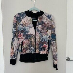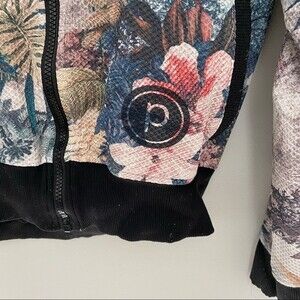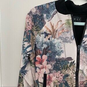Noli Yoga x Pure Barre Jacket Painted Colorful Floral Print Pattern Bomber Zip