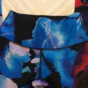 Noli leggings. Design is like abstract art in blues, black, red and purple. NWOT. Never worn but tag is missing. Soft and comfortable. Made of polyester, spandex and polyamide. Multiple sizes. Inseam 28”.
