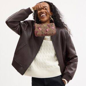 Signature coated canvas Two credit card slots Zip-top closure fabric lining Handle with 6 1/4 drop 7 1/2 (L) x 4 1/2 (H) x 2 (W) Style No. CZ011
