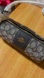 Signature jacquard and smooth leather Zip-top closure fabric lining Handle with 6 3/4 drop 7 3/4 (L) x 3 1/4 (H) x 3 1/4 (W) Exclusive of trim this Coach piece is crafted of our Signature jacquard made from a blend of organic cotton and recycled polyester Style No. CU989