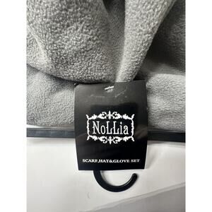 Nollia Winter Set Scarf Hat & Gloves Gray Fleece 3 Piece Cold Weather Gift New