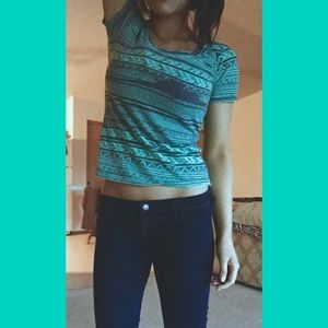 Stretch material and good fit. Perfect for high-waisted skirts or pants. X-small but I wear usually small-medium and it fits!