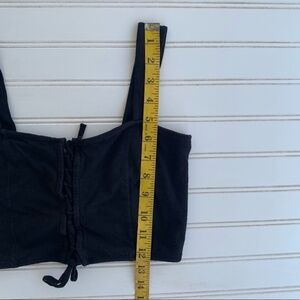 Cute and comfy black crop top from Nollie in a size Small. Features a lace-up front detail, thick straps, and soft stretch cotton blend (95% cotton, 5% lycra). Super flattering fit and great for layering or wearing solo in warm weather.