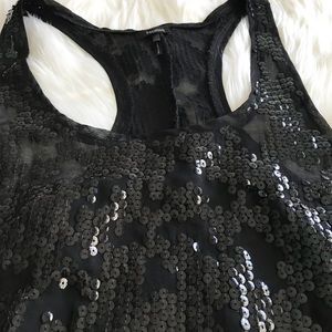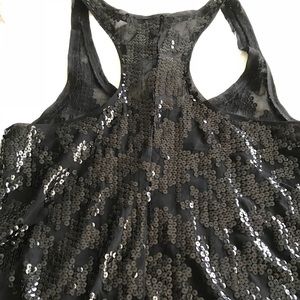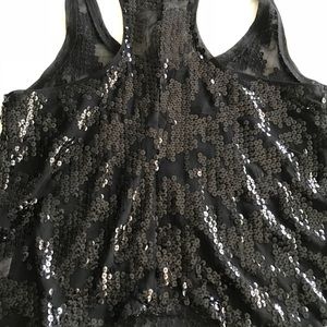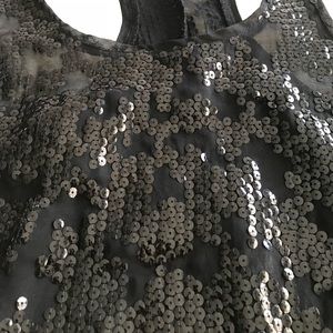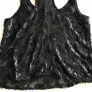 Black sequin tank is gorgeous, reflective & perfect to dress up or down. Material is sheer, lightweight & flows!