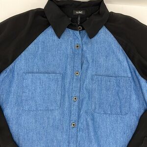 Nollie Contrast Chambray Front Sheer Back Button Front Shirt Top Size Large