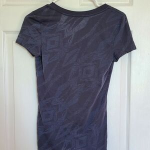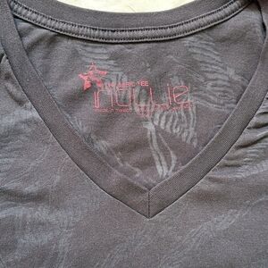 This shirt has been very lightly worn so it is still in great condition. The design on this shirt is sheer so it is slightly see-through on the patterns.