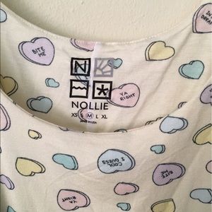 Yellow flowy crop top with conversation hearts. Size medium. Never been worn.