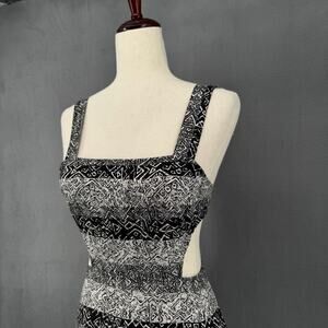 Nom De Plume Yaya Abstract Geometric Print Maxi Dress M Black White Cut Outs