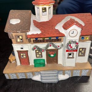 Noma Dickensville Collectibles Porcelain Lighted Train Station 1995 Tested Works