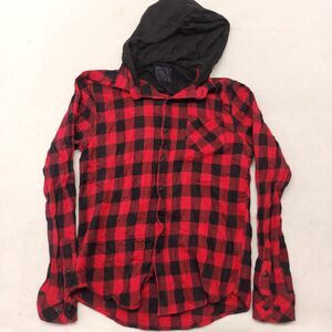 Nomad Casual Long Sleeve Button Up Hoodie Mens Size Small S Red Black Plaid
