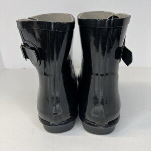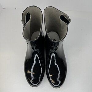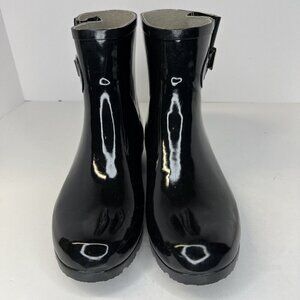 Nomad Dew Waterproof Rain Boots Womens Size 8 Silver Buckle Shiny Solid Black
