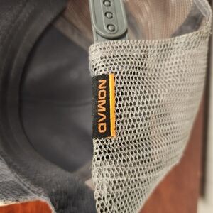 This Nomad hat is a green camouflage snapback cap for adult men. Made of polyester and spandex, it is lightweight and adjustable, suitable for casual outdoor occasions in all seasons. The brand is Nomad and it is not handmade, featuring a classic baseball cap style.