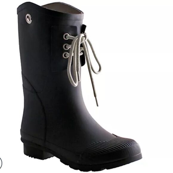 Nomad Lace-Up Detail Rubber Rain Boots - KellyB, Black, Size 7, NWOT