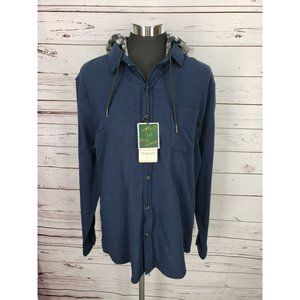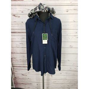 Nomad Men’s Button Up Shirt Jacket Blue Hoodie With Camo Hood. Size Large NWTS