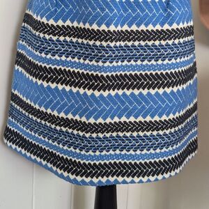 Description: Nomad Morgan Carper Embroidered Jacquard Skirt L EUC, double stripe jacquard pattern throughout, exposed back zipper with silver toned hardware, lined, two side slip pockets