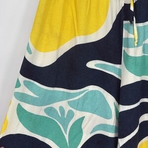 Fabric: Lightweight, non-stretch weave. Abstract print. Fabric made of material from wood and wood pulp derived from sustainably managed forests. Covered elastic waist with drawstring. Shell: 100% viscose. Hand wash. Made in the USA.