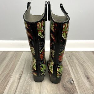 Excellent used Condition Women’s Nomad Black, Red, Ivory and Green Paisley Print Pointed Toe Heeled Cowboy Rain Boots in Size 7