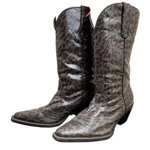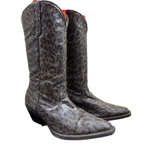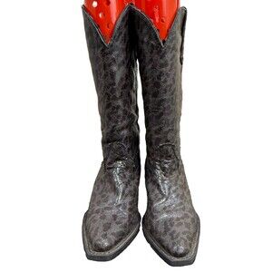 Nomad Western Cowboy Boots 8 Pointed Green Coastal Boho Leopard Print Cowgirl
