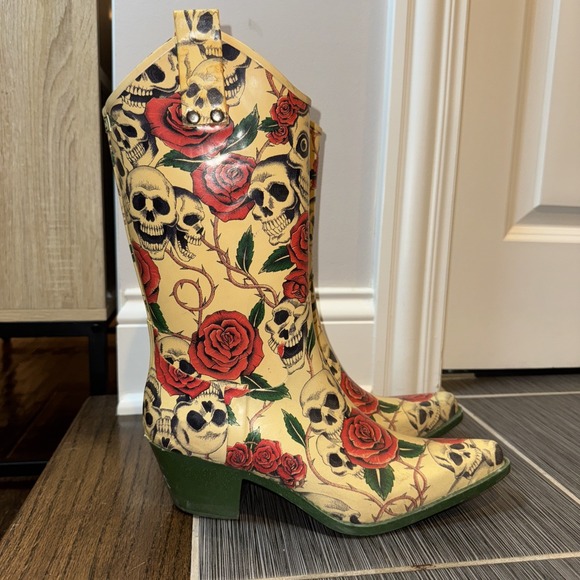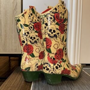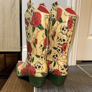 Nomad Womens 9 Rain Boots Skull Skeleton Rose Snip Toe Cowboy Western EUC $128
