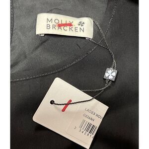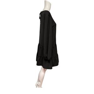 From Designer Molly Bracken, this ruffled black dress looks great paired with boots for a fun casual day look.