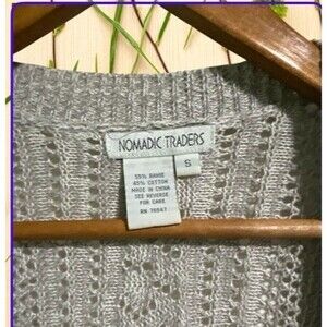 Nomadic Traders Cardigan Sweater Women’s Small Open Knit Tan Ramie Cotton Blend