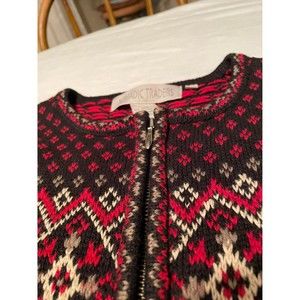 Beautiful red white and black classic sweater. Zipper closure.