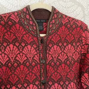 Nomadic Traders Cotton Blend Knit Fair Isle / Nordic Print Cardigan Sweater, M