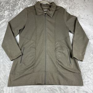 Nomadic Traders Long Sweatshirt Women's Large Taupe Ruched Collar Zip Up (1006)
