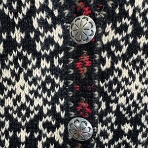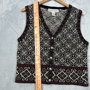 Nomadic Traders Sweater Vest Womens M Black White Nordic Buttons Knit Snowflake