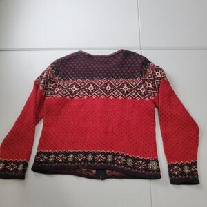 Nomadic Traders Sweater Womens Medium Red Black Fair Isle Cardigan Nordic