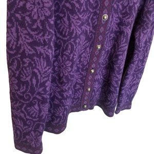 Nomadic Traders Womens L Purple Floral Long Sleeve Button Front Cardigan Sweater