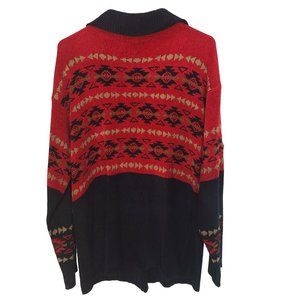 Nomadic Traders Womens L Red Black Southwestern Button Front Cardigan Sweater