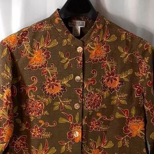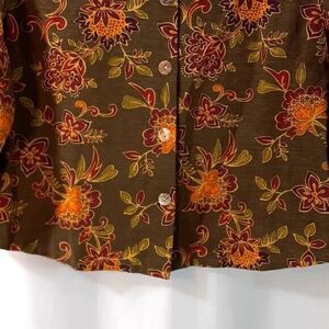 Nomadic Traders size large silk linen floral boxy 3/4 sleeve button front