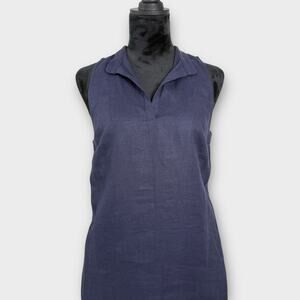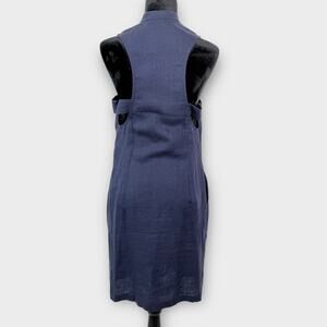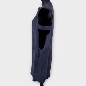 Nomia Linen Dress Size 10 Navy Blue Side Cut Outs Pockets Minimalist Made in USA