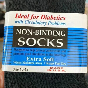 Non Binding Socks Ideal For Diabetics With Circulatory Problems Size 10-13. NWT EXTRA SOFT. MADE IN USA. WICKS MOISTURE. KEEPS FEET DRY. Unisex. Slightly irregular.
