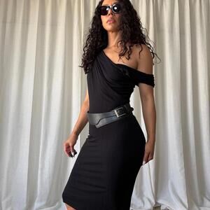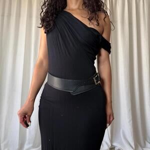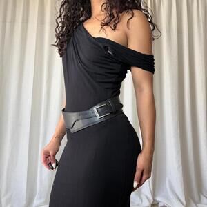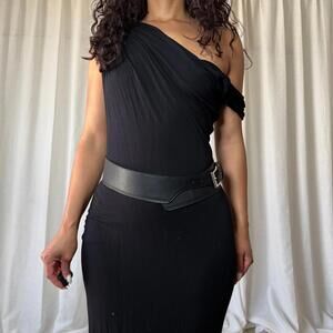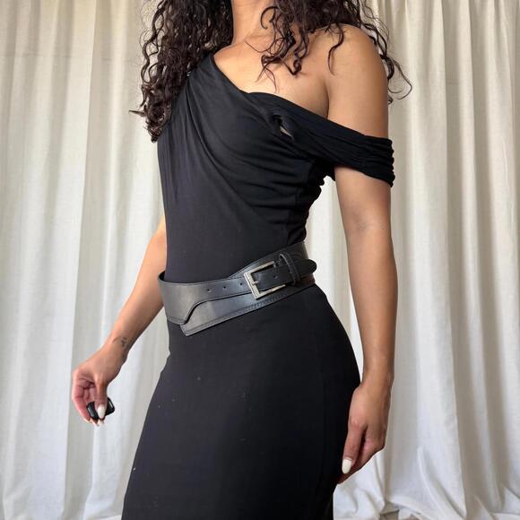 Black unlabeled waist belt with silver detail